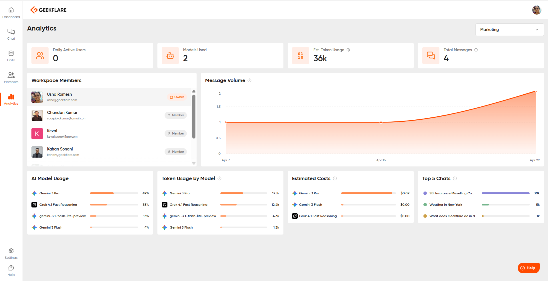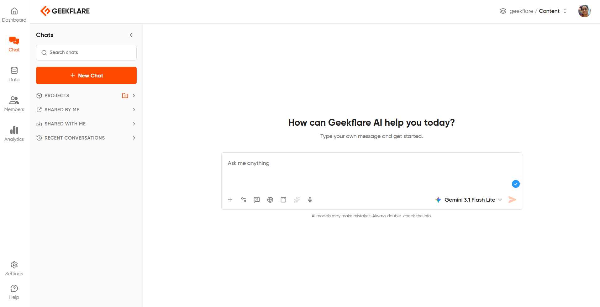 1. Geekflare Chat, which is the pay-once-use-all-models platform where we manage the AI models.