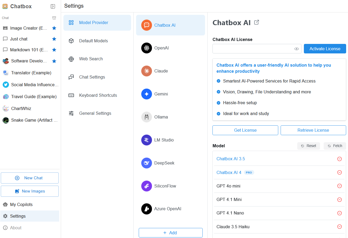 Chatbox AI puts multiple AI models under one simple subscription, priced at just $3.5/month, making it perfect for AI generalists. However, you still have the more popular, BYOK (bring your own key), if you’re a pro user. Supported AI providers include OpenAI, Claude, Gemini, Deepseek, xAI, Perplexity, and Grok, and model aggregators such as Ollama and LM Studio.
