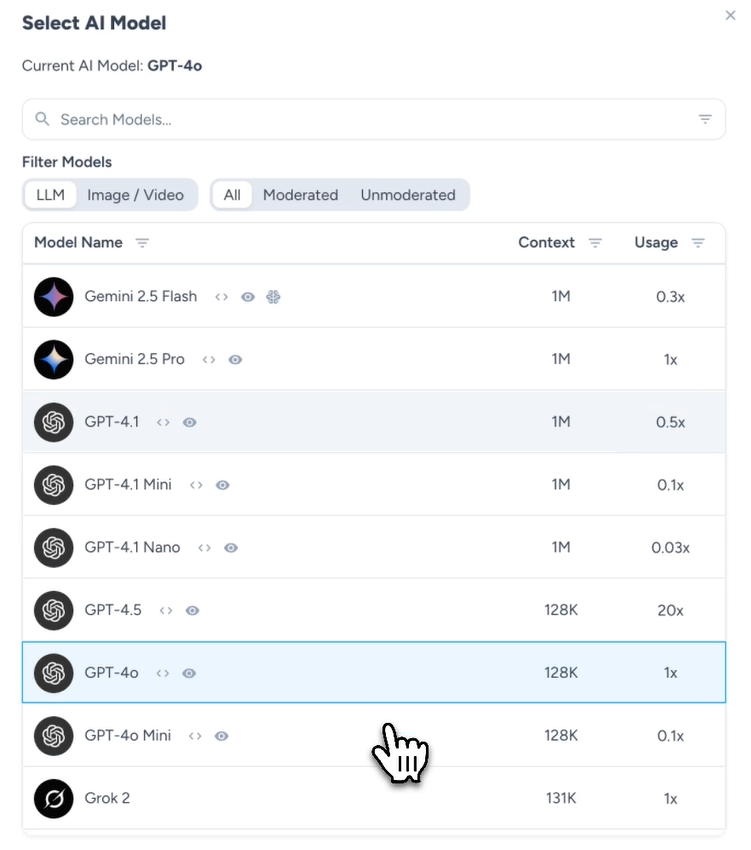 TypingMind provides access to LLMs from OpenAI, Anthropic, and OpenAI by default, and you can also set custom models for yourself.