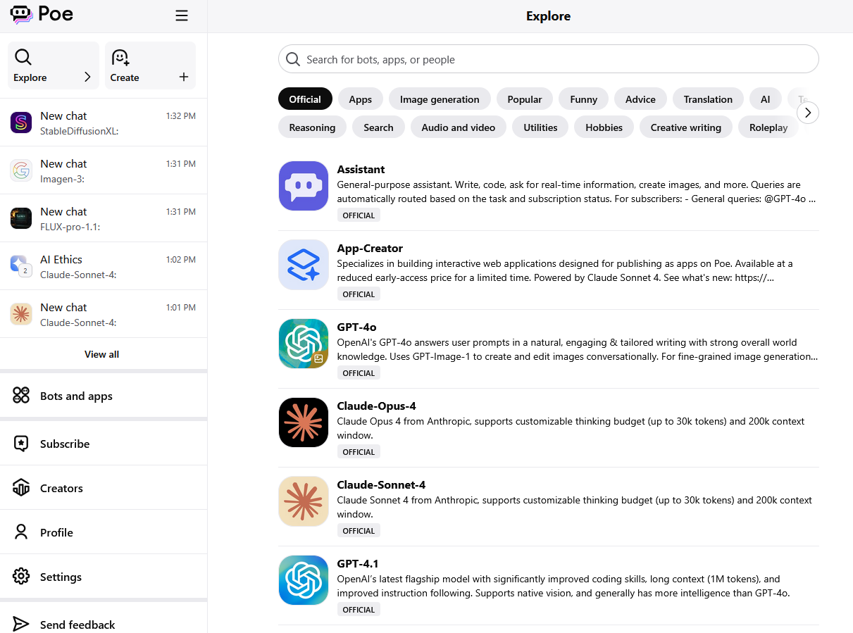 You can use Poe in a web browser or via its apps for Windows, iOS, and Android.