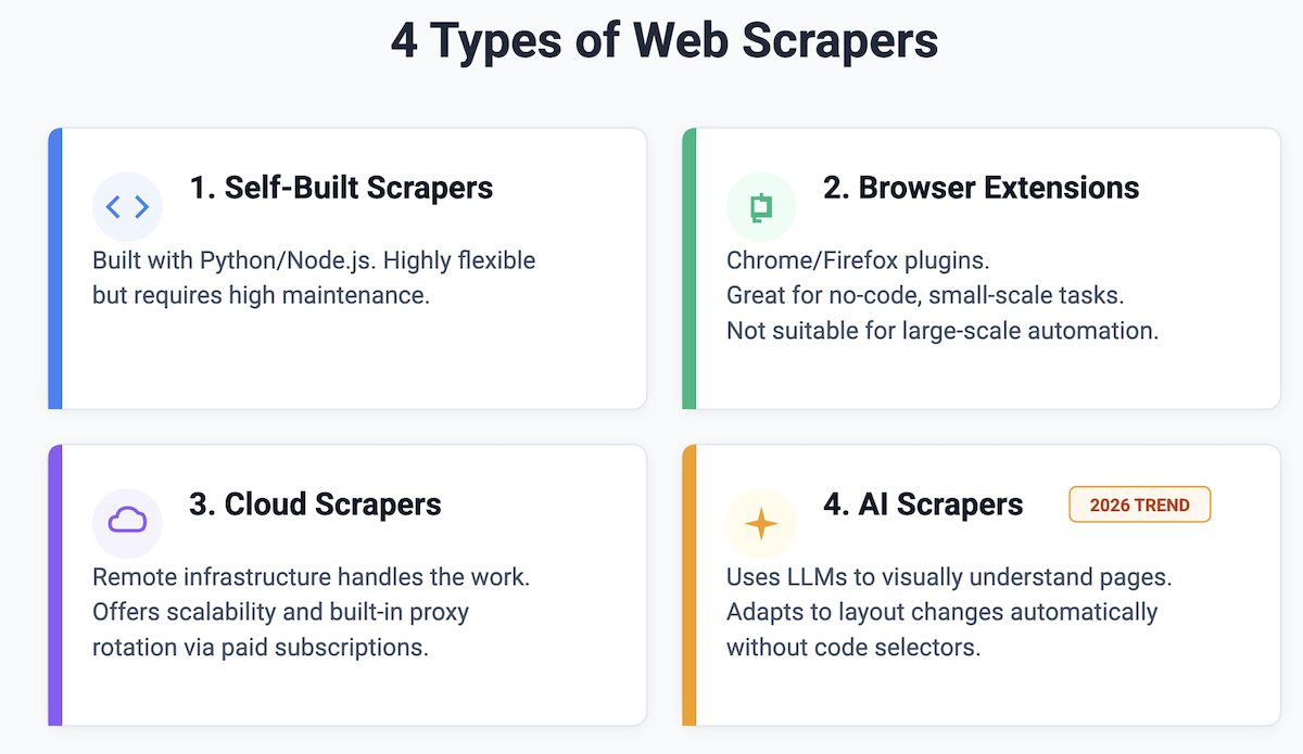 4 Different Types of Web Scrapers