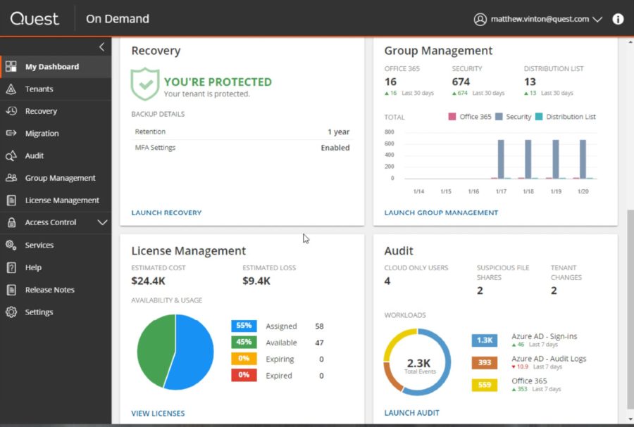 Quest’s Active Administrator is a comprehensive Microsoft AD management solution providing you with a single consolidated view into the management of your AD, supporting your auditing requirements and security needs.