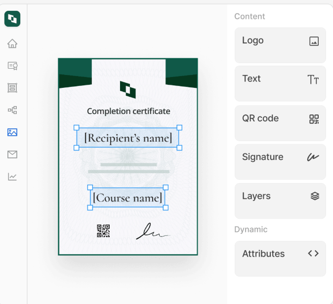 This “plug-and-play” ready solution integrates seamlessly with major LMS platforms and other popular tools like Zoom, Moodle, and WordPress for efficient distribution. Sertifier also lets you customize certificates to match your brand’s look and feel, helping people recognize and remember your organization. The platform has comprehensive analytics to track issuance, engagement, and campaign success for data-driven decision-making.