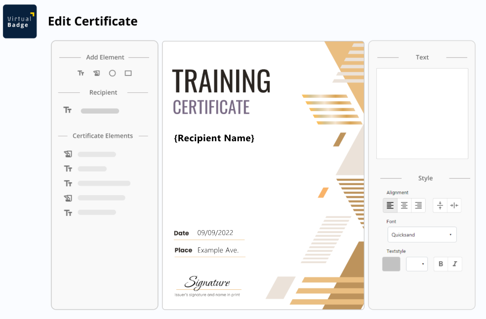 With an easy-to-use editor, you can design credentials, upload your own backgrounds, or tweak existing templates. Virtualbadge.io simplifies recipient management by allowing you to upload lists and send certificates via secure email or through integrations.