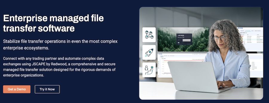 JSCAPE by Redwood is the easy-to-use, secure MFT (managed file transfer) solution that redefines flexibility and security for modern digital landscapes.