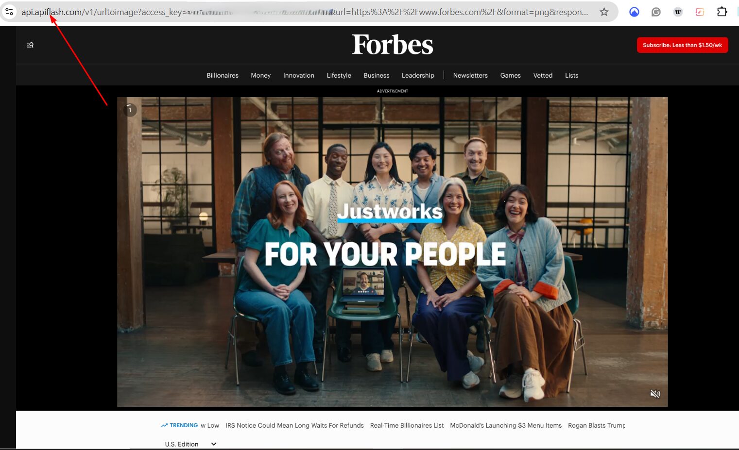 I tested the Restpack Screenshot API on our Business Operations page: I was able to set the screenshot type to full-page or retina, delay capture, inject CSS, block ads, and cookie warnings when capturing my screenshot. This is the code I used is given below.