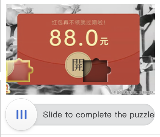 Slide-to-fit or drag-and-drop puzzles where users complete an image by moving a piece into the right position. Common on Chinese platforms like Geetest.